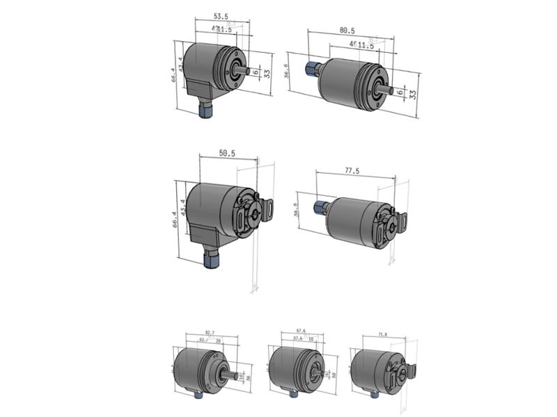 W wersjach ATEX dostępne są modele w kompaktowej obudowie ø 36 mm — zarówno z wałkiem, jak i z otworem — polecane do instalacji, gdzie przestrzeń montażowa jest mocno ograniczona. W ofercie znajdują się również większe enkodery Ex w obudowie ø 58 mm, czyli najczęściej stosowanym rozmiarze w standardowych aplikacjach. Dostępne są warianty z wałkiem (kołnierz zaciskowy, synchro, kwadratowy) oraz z otworem.