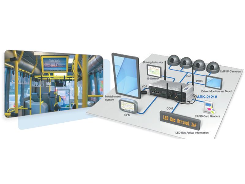Firma Advantech oferuje rozwiązanie NVR – w postaci komputera kompaktowego ARK-2121V, który jest wyposażony w dostosowany do sektora transportowego bezwentylatorowy system, 7" monitor dotykowy open frame oraz kamery IP. Ten bezwentylatorowy system posiada wbudowany sterownik MCU do obsługi funkcji zasilania power ignition. Jednostka systemowa może być automatyczne włączana i wyłączana dzięki sygnałowi z zapłonu lub akumulatora. Komputer posiada cztery wbudowane porty PoE, które zapewniają proste i łatwe połączenie oraz zasilanie kamery IP przez jeden kabel RJ-45 cat.6.