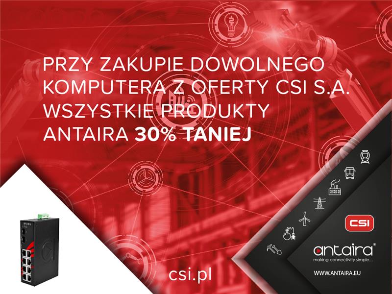Mamy przyjemność poinformować, że właśnie rusza letnia super promocja w firmie CSI S.A. Przy zakupie dowolnego komputera przemysłowego z oferty CSI S.A. każdy klient otrzyma rabat na wszystkie produkty firmy Antaira w wysokości aż 30%!