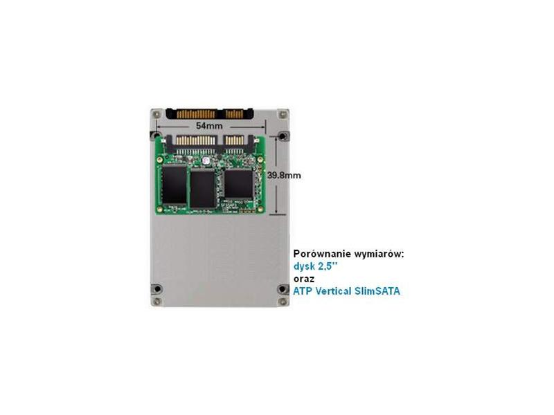 Dysk SSD ATP Slim SATA Vertical to najnowsza, w pełni zestandaryzowana przez JEDEC konstrukcja dysku SSD przeznaczona do aplikacji miniaturowych typu Embedded gdzie grubość jest kluczowa do zapewnienia kompaktowej konstrukcji całego urządzenia. Szerokość taka sama jak dla dysków 1,8", długość to prawie połowa dysku 1,8".