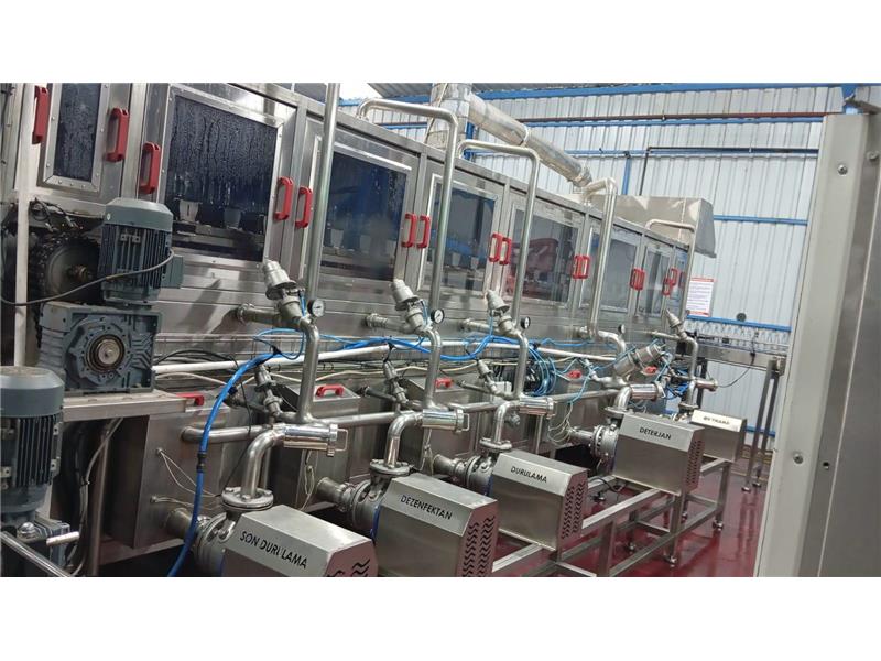 Butelki są najpierw płukane w celu usunięcia grubszych zabrudzeń i zanieczyszczeń. Obejmuje to odprowadzanie wody. Zapewnia podstawowe czyszczenie przed myciem detergentem (w tym drenaż) Mycie wewnętrzne i zewnętrzne.