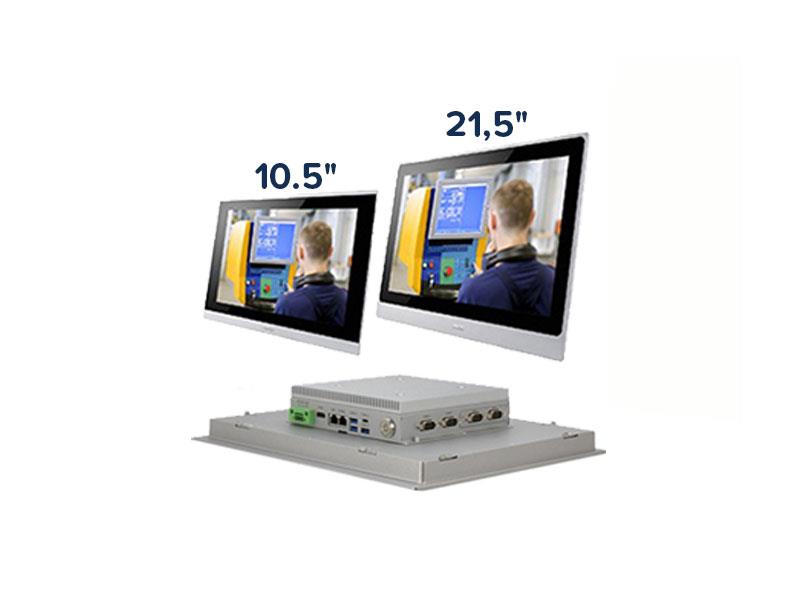 Rozdzielczości wyświetlaczy wahają się od 1024 x 768 w najmniejszych modelach do 1920 x 1080 w wersji 21,5″. Dostępne są opcje ekranów dotykowych PCAP oraz 5-przewodowych rezystancyjnych, umożliwiając precyzyjną obsługę wielopunktową (multi-touch), co zwiększa intuicyjność i efektywność interfejsu użytkownika.