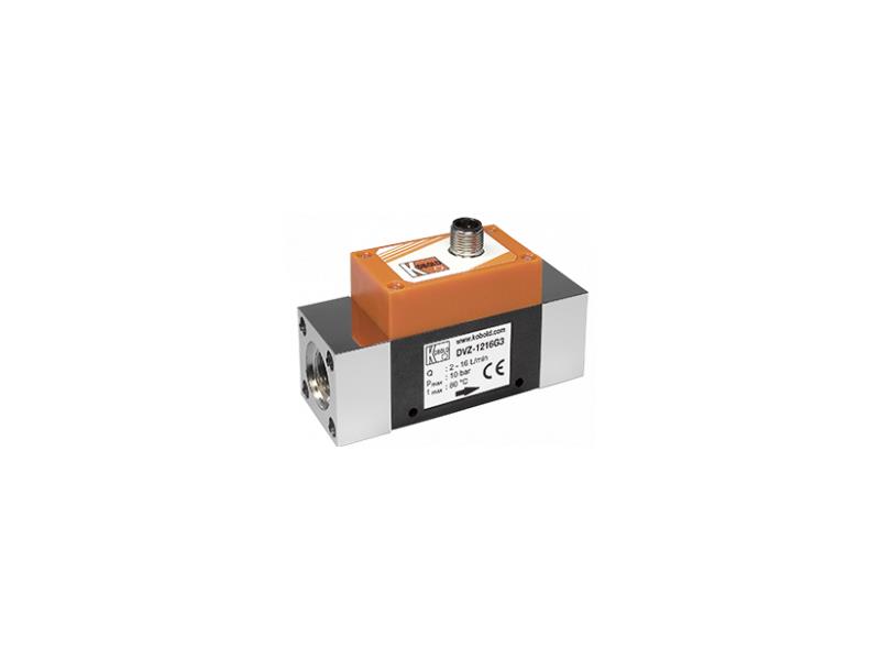 Przepływomierz DVZ firmy KOBOLD jest kompaktowym przepływomierzem wirowym (vortex) przeznaczonym do pomiaru oraz nadzoru małych i średnich przepływów cieczy o lepkości zbliżonej do wody. Urządzenie pracuje w oparciu o zasadę generacji wirów Kármána, powstających za elementem spiętrzającym umieszczonym w kanale przepływu. Częstotliwość powstających wirów jest proporcjonalna do prędkości przepływu medium, co pozwala na dokładne i stabilne wyznaczenie natężenia przepływu w szerokim zakresie pracy.