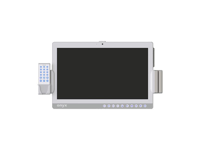 Monitor ONYX-BE381 posiada dotykowy ekran pojemnościowy (multidotykowy) lub rezystancyjny (jednodotykowy – prawa w rękawiczkach) TFT LCD. Terminal wyposażony jest w cztery porty USB, oraz port HDMI, za pomocą którego umożliwia wyświetlanie obrazu w jakości HD. Urządzenie znajduje zastosowanie przede wszystkim na oddziałach szpitalnych.