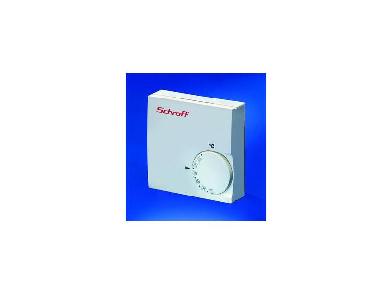 Firma Schroff oferuje trzy typy termostatów, które, sterując wentylatorami oraz grzałkami, zapewniają utrzymywanie wybranej temperatury we wnętrzu szafy mechaniki 19”. Termostat ze zintegrowanym czujnikiem temperatury zapewnia stabilizacje temperatury w zakresie od 50C do 600C. Termostat z zewnętrznym czujnikiem temperatury, podłączanym kablem o długości 2m, zapewnia stabilizację temperatury w zakresie od 200C do 600C. Termostat z wyświetlaczem trzycyfrowym zdatny jest do pracy w zakresie od -300C do +750C. Od czoła cechuje się stopniem ochrony IP54. Współpracuje z zewnętrznym czujnikiem temperatury typu PTC podłączanym kablem o długości 2m. W wersji programowalnej zabezpieczony jest przed nieautoryzowanym dostępem.