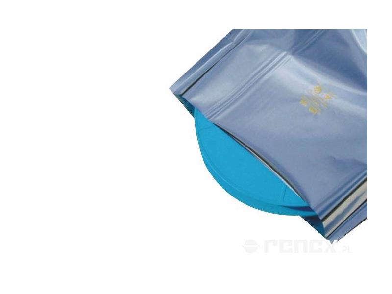 Zgrzewalny brzeg umożliwia trwałe zamknięcie opakowania, co jest kluczowe dla elementów MSD (Moisture Sensitive Devices). Przed zamknięciem zaleca się umieszczenie wewnątrz wkładki higroskopijnej, aby zapewnić pełną kontrolę wilgotności i zabezpieczyć zawartość podczas transportu oraz długotrwałego przechowywania. Wszystkie modele zapewniają szybkie rozładowanie ładunków elektrostatycznych (< 2 s) i dostępne są w pakietach po 100 sztuk.