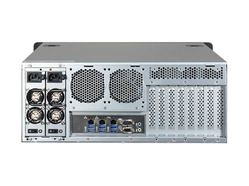 Wyposażenie komputera w siedem gniazd PCle: 3 x PCIe x16 (Gen4 x16), 3 x PCIe x8 (Gen3 x4) oraz 1 x PCIe x8 (Gen4 x8) pozwala na obsługę nawet czterech kart GPU (w tym trzech PCI-Ex x16) zarówno lub zamiennie z kartami frame grabber lub modułami AI. Ponadto komputer jest wyposażony w osiem portów SATA, które mogą obsługiwać dyski HDD 2,5" lub 3,5" zamontowane w wewnętrznych zatokach na dyski.