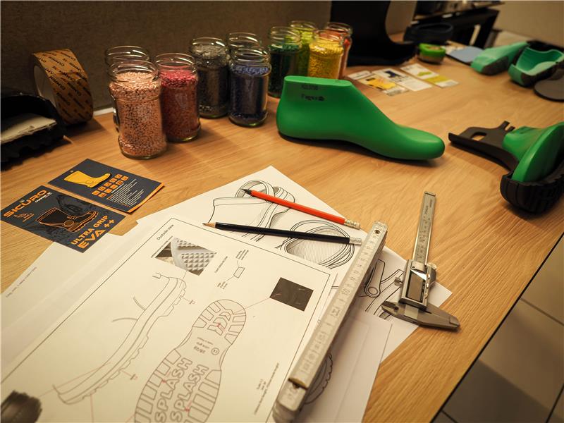 Projektowanie produktów z EVA przez producenta butów roboczych rozpoczyna się od analizy pomysłu. Klient przedstawia koncepcję, a my badamy wykonalność w naszych technologiach EVA oraz EVA++. Weryfikujemy geometrię, przewidywane obciążenia i wymagania normatywne, żeby już na początku uniknąć błędów projektowych.
