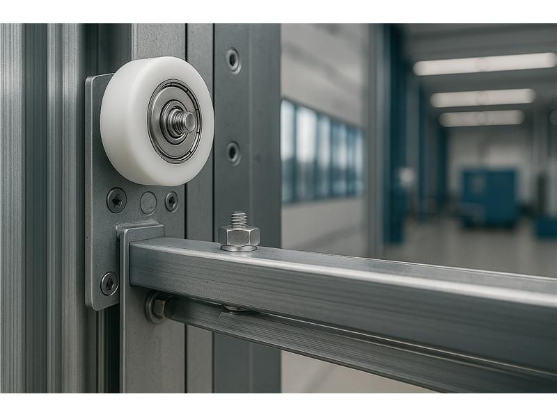 Rolki prowadzące z poliuretanu (PUR, ciemnobrązowy, średnica 20–60 mm) są stosowane tam, gdzie potrzebne jest szczególnie stabilne działanie i ochrona wrażliwych elementów. PUR tłumi drgania, kompensuje uderzenia i przyczynia się do cichego działania – dzięki czemu jest idealny w otoczeniach wrażliwych na hałas i gdzie mamy do czynienia z różnymi obciążeniami.